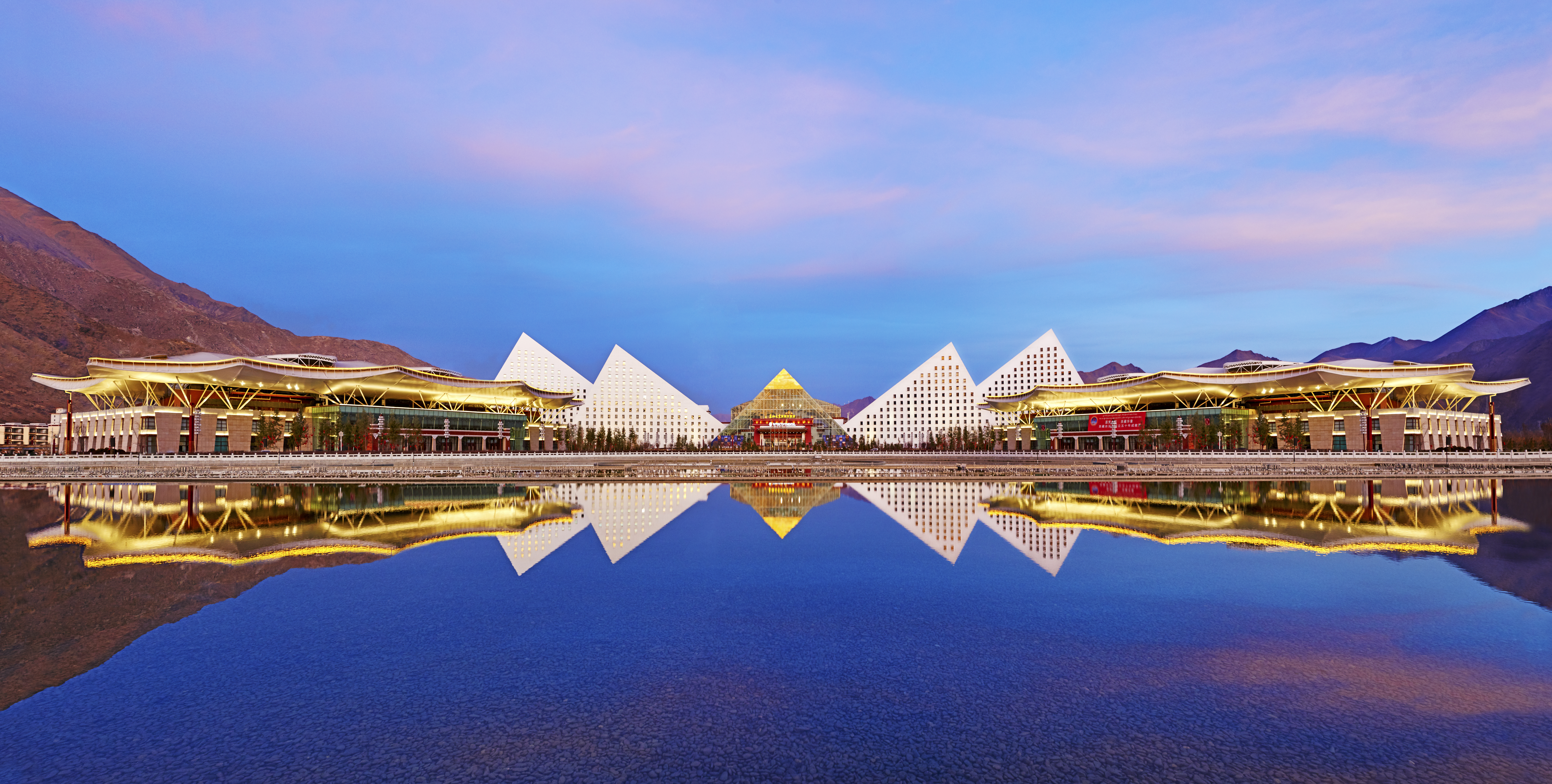 2014年,中交一公局集團承建的西藏會展中心正式投入使用。西藏會展中心總建筑面積約3.5萬平方米,建成后,成為當?shù)丶褂[展示、會議論壇、文化交流于一體的綜合性地標建筑。