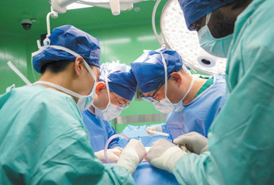 8月10日,醫(yī)生在中國海軍“和平方舟”號(hào)醫(yī)院船上,為瓦努阿圖患者進(jìn)行手術(shù)。