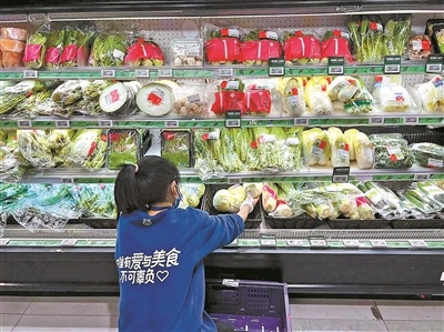 目前,北京40家盒馬門店的備貨量已達到日常的4-5倍,每日增加了200噸新鮮蔬菜、水果、肉蛋奶等多種民生商品。此外,多家門店還臨時增設(shè)散裝菜、肉售賣區(qū),可論斤稱重,進一步滿足民眾對生鮮物資的需求。