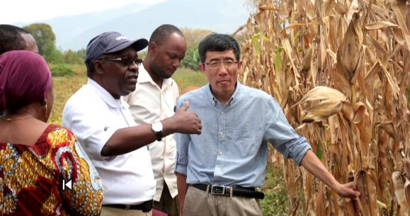 中國(guó)農(nóng)業(yè)專家在坦桑尼亞指導(dǎo)當(dāng)?shù)厝罕娫苑N玉米