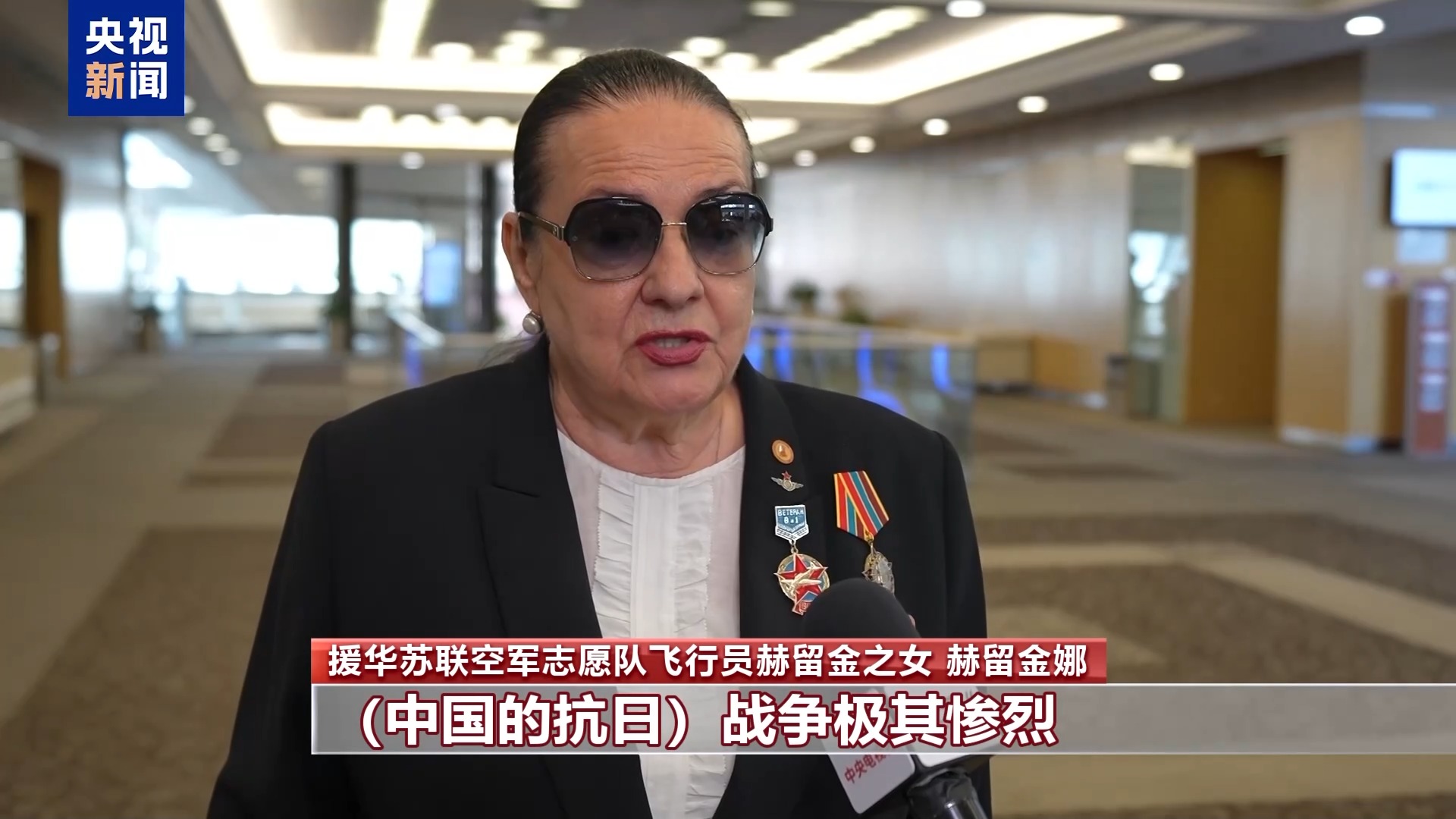 援華蘇聯(lián)空軍志愿隊(duì)飛行員赫留金之女 赫留金娜:中國的抗日戰(zhàn)爭極其慘烈,很多村莊、城市等都被摧毀殆盡,中國人民遭受了慘重?fù)p失,最終日本的侵略被擊退。二戰(zhàn)期間,中國為結(jié)束這場戰(zhàn)爭作出巨大貢獻(xiàn)。