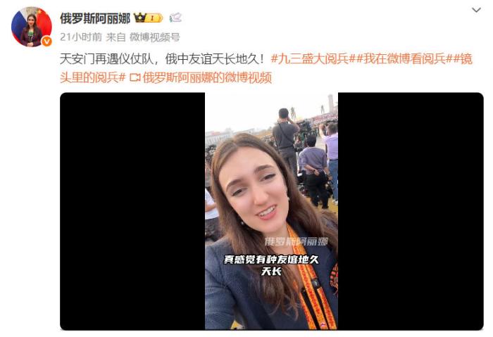 十年后,阿麗娜終于圓夢,來到了北京。九三閱兵當(dāng)天,阿麗娜在社交媒體上接連發(fā)布多條帖文,并用中文表達(dá)了自己的開心,“中國軍人太帥了”“俄中友誼天長地久”!