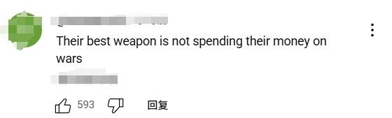 有美國(guó)網(wǎng)友表示,中國(guó)最好的“武器”,是不把錢(qián)花在發(fā)動(dòng)戰(zhàn)爭(zhēng)上。