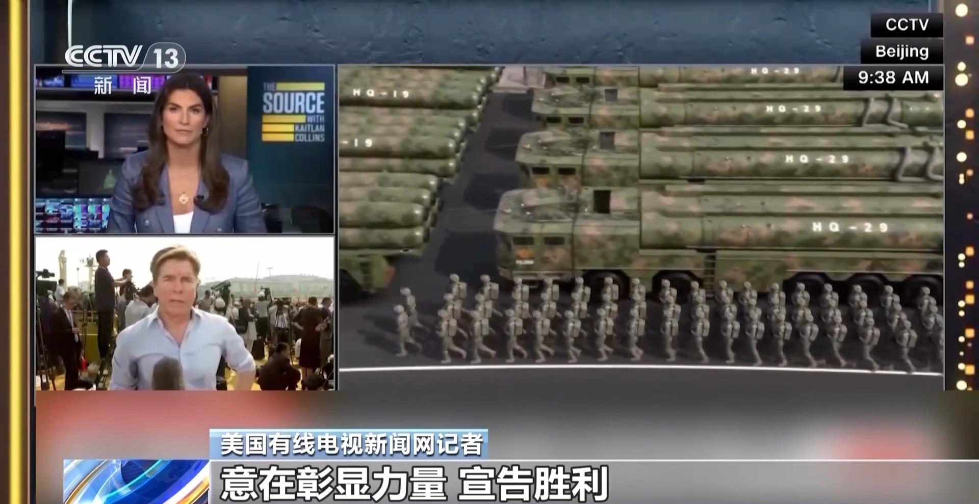 美國有線電視新聞網(wǎng)記者:這次閱兵傳遞的信息,意在彰顯力量,宣告勝利。這次閱兵是向中國國內和世界展示中國國力強大,中國可以保護好自己。