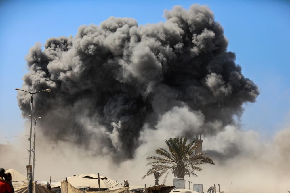 9月5日,加沙城一棟建筑遭以色列軍隊(duì)空襲后升起濃煙。新華社發(fā)(里澤克·阿卜杜勒賈瓦德攝)