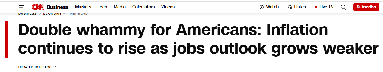 美國(guó)經(jīng)濟(jì)正面臨 “通脹高企” 與 “就業(yè)降溫” 的雙重打擊。