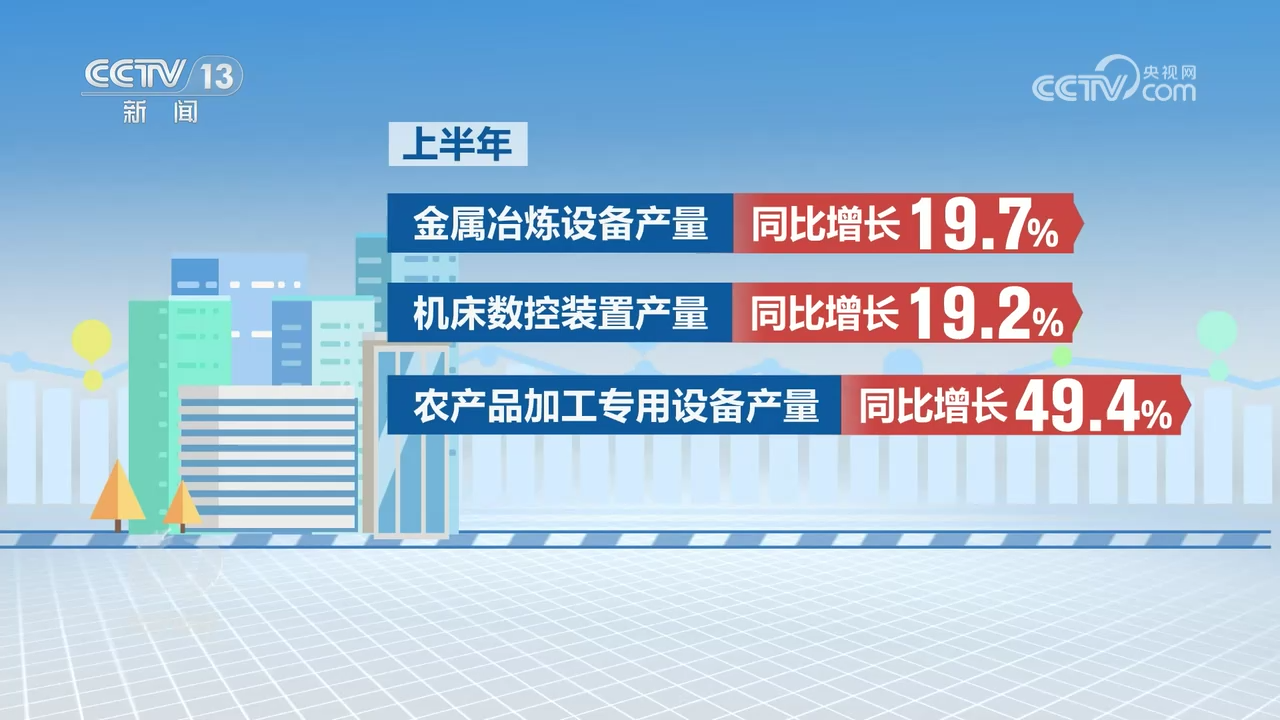 今年以來,在各方共同努力下,推動大規(guī)模設(shè)備更新和消費品以舊換新工作取得良好開局。一方面,大規(guī)模設(shè)備更新帶動了相關(guān)設(shè)備生產(chǎn)較快增長,惠及多個重點行業(yè)。上半年,規(guī)模以上金屬冶煉設(shè)備、機床數(shù)控裝置、農(nóng)產(chǎn)品加工專用設(shè)備產(chǎn)量同比分別增長19.7%、19.2%、49.4%。另一方面,消費品以舊換新政策引導(dǎo)居民消費潛力有序釋放,對拉動汽車、家電等耐用消費品銷量增長起到了一定的“催化”作用。上半年,限額以上單位,也就是年主營業(yè)務(wù)收入達到500萬元及以上的零售企業(yè),家用電器和音像器材類商品零售額同比增長3.1%,比上年同期加快2.1個百分點。