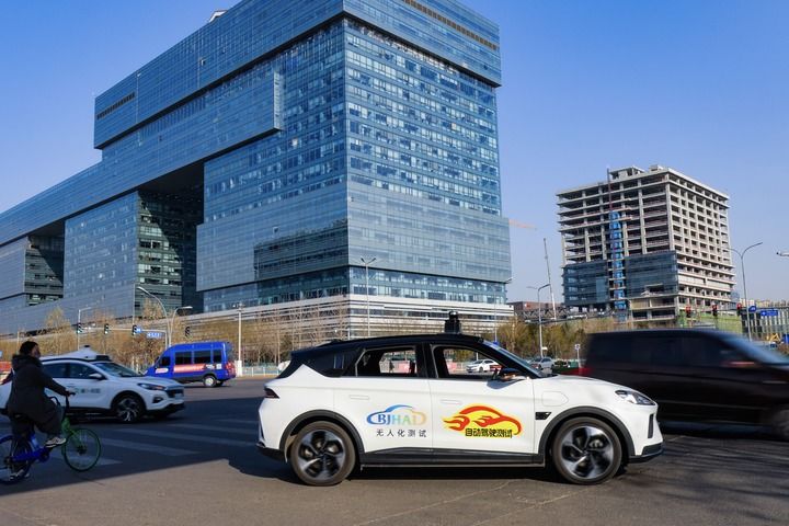 車內(nèi)無人自動駕駛測試車輛在北京亦莊公開道路測試。(受訪者供圖)