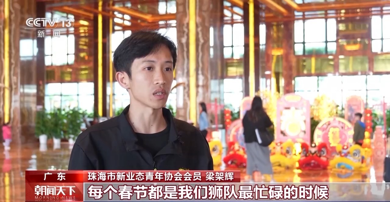 珠海市新業(yè)態(tài)青年協會會員 梁架輝:每個春節(jié)都是我們獅隊最忙碌的時候,但是我們也不覺得辛苦,奮斗的青春最美麗,希望為大灣區(qū)的新春增添更多喜慶氣氛。