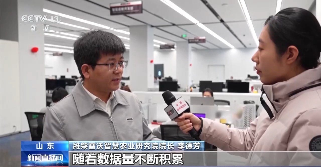 濰柴雷沃智慧農(nóng)業(yè)研究院院長 李德芳:實際上農(nóng)機變成了一個可移動的智能終端,它上面搭載了各種傳感器,作業(yè)過程中去采集各種作業(yè)的信息,這些數(shù)據(jù)到了(AI)模型去做一個融合,這樣的話幫助農(nóng)機作業(yè)更精準(zhǔn)。