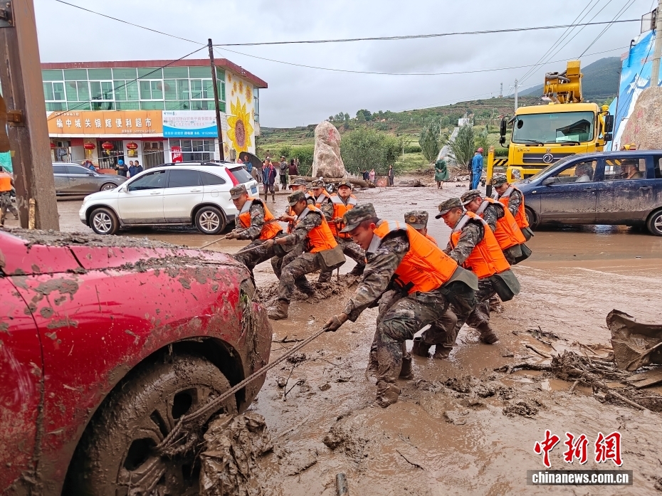 截至8日晚,武警甘肅總隊投入396名兵力開展道路清淤、人員搜救、搬運物資等救援行動,共轉(zhuǎn)移群眾171人、搜救被困群眾5人、救治受傷群眾2人、清理危房6處、轉(zhuǎn)移受損車輛12輛,累計清理淤泥、山石700余方,搜索河道6公里、搶通道路2300米。圖為8月8日,武警甘肅總隊機動支隊官兵挺進災(zāi)區(qū)甘肅省蘭州市榆中縣馬坡鄉(xiāng)舊莊溝村展開救援。劉昆 攝