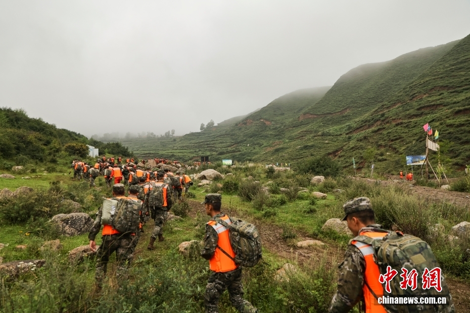 8月8日,武警甘肅總隊機動支隊官兵挺進災(zāi)區(qū)甘肅省蘭州市榆中縣馬坡鄉(xiāng)舊莊溝村展開救援。劉昆 攝