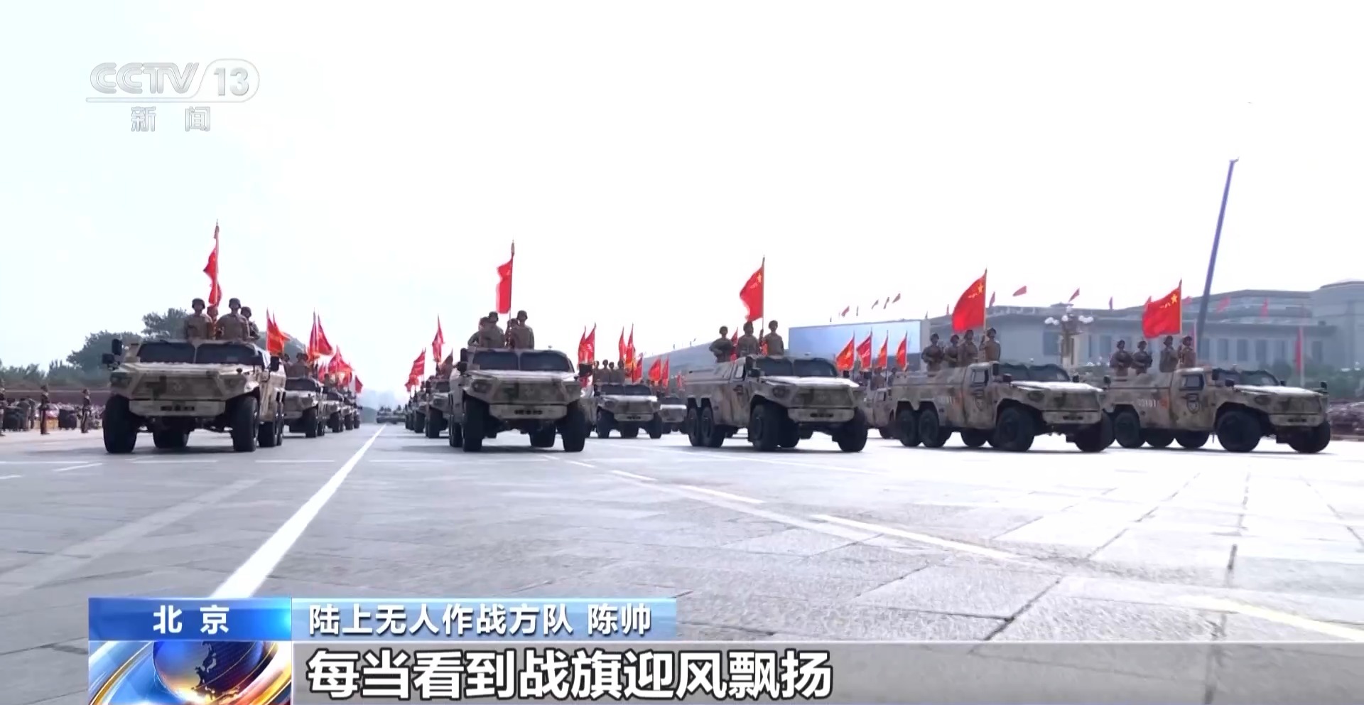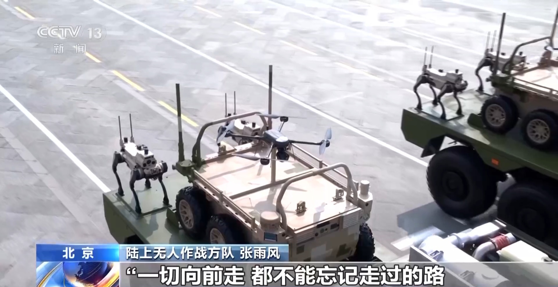 陸上無人作戰(zhàn)方隊 張雨風:如今,我們擁有了先進的武器裝備,更要牢記中華民族一路走來的艱辛,牢記人民軍隊使命初心,弘揚好抗戰(zhàn)偉大精神,把手中先進武器裝備轉(zhuǎn)化為部隊實際作戰(zhàn)能力,聚力打贏實現(xiàn)建軍一百年奮斗目標攻堅戰(zhàn)。