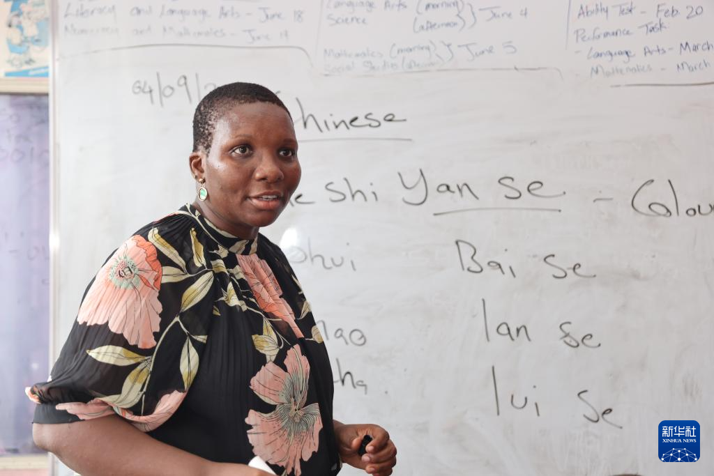 在牙買加首都金斯敦的一間教室里,艾特特殊教育小學(xué)校長娜塔莎·拉塞爾在黑板上書寫著與顏色相關(guān)的漢字,孩子們端坐在椅子上,跟隨她輕聲朗讀。教室里時而響起整齊的讀書聲,時而響起輕快的中文歌曲旋律。