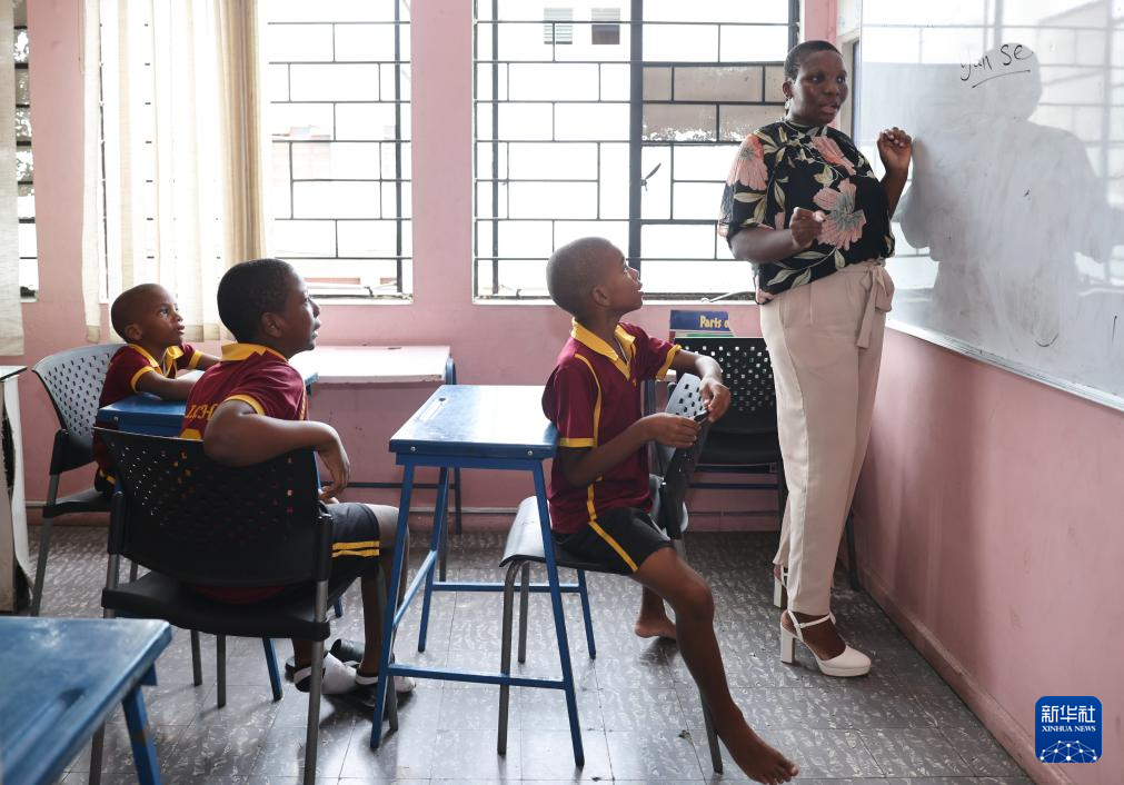 9月4日,在牙買加首都金斯敦艾特特殊教育小學(xué),校長娜塔莎·拉塞爾在授課。新華社記者 李夢馨 攝