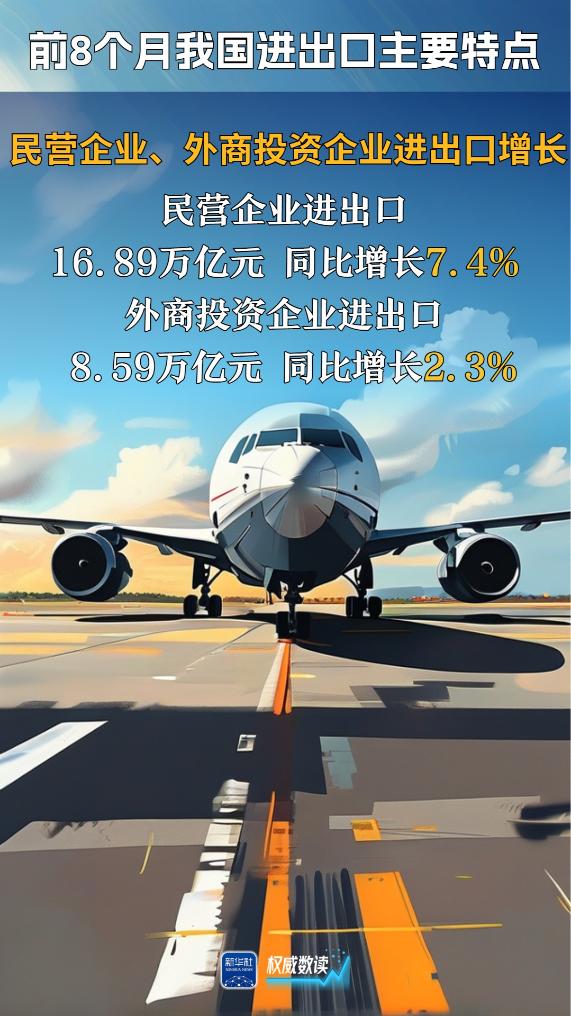 海關(guān)總署8日發(fā)布數(shù)據(jù)顯示,今年前8個月,我國貨物貿(mào)易延續(xù)平穩(wěn)增長態(tài)勢,進(jìn)出口總值29.57萬億元人民幣,同比增長3.5%。8月份,我國貨物貿(mào)易進(jìn)出口總值同比增長3.5%,出口、進(jìn)口連續(xù)3個月實(shí)現(xiàn)雙增長。