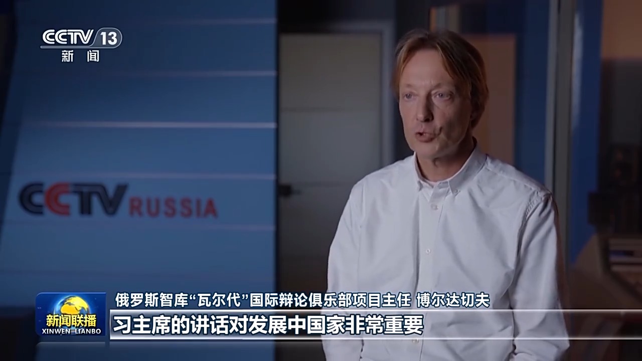 俄羅斯智庫“瓦爾代”國際辯論俱樂部項(xiàng)目主任 博爾達(dá)切夫:習(xí)主席的講話對發(fā)展中國家非常重要,當(dāng)前的動蕩形勢給發(fā)展中國家?guī)硖魬?zhàn),只有開放合作的國際環(huán)境,才有助于世界各國的發(fā)展,當(dāng)下我們正處于歷史的轉(zhuǎn)折點(diǎn),迫切需要全球治理倡議,這一倡議是對全球的重大貢獻(xiàn)。