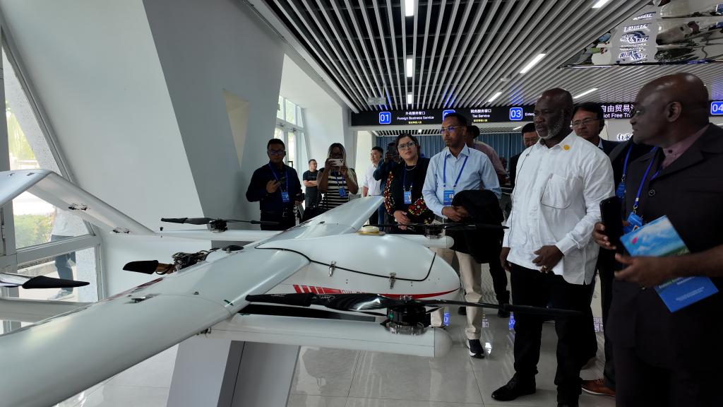 9月13日,外國議員在中國(新疆)自由貿(mào)易試驗區(qū)喀什片區(qū)展廳低空經(jīng)濟(jì)展區(qū)參觀。 新華社記者 王澤宇 攝