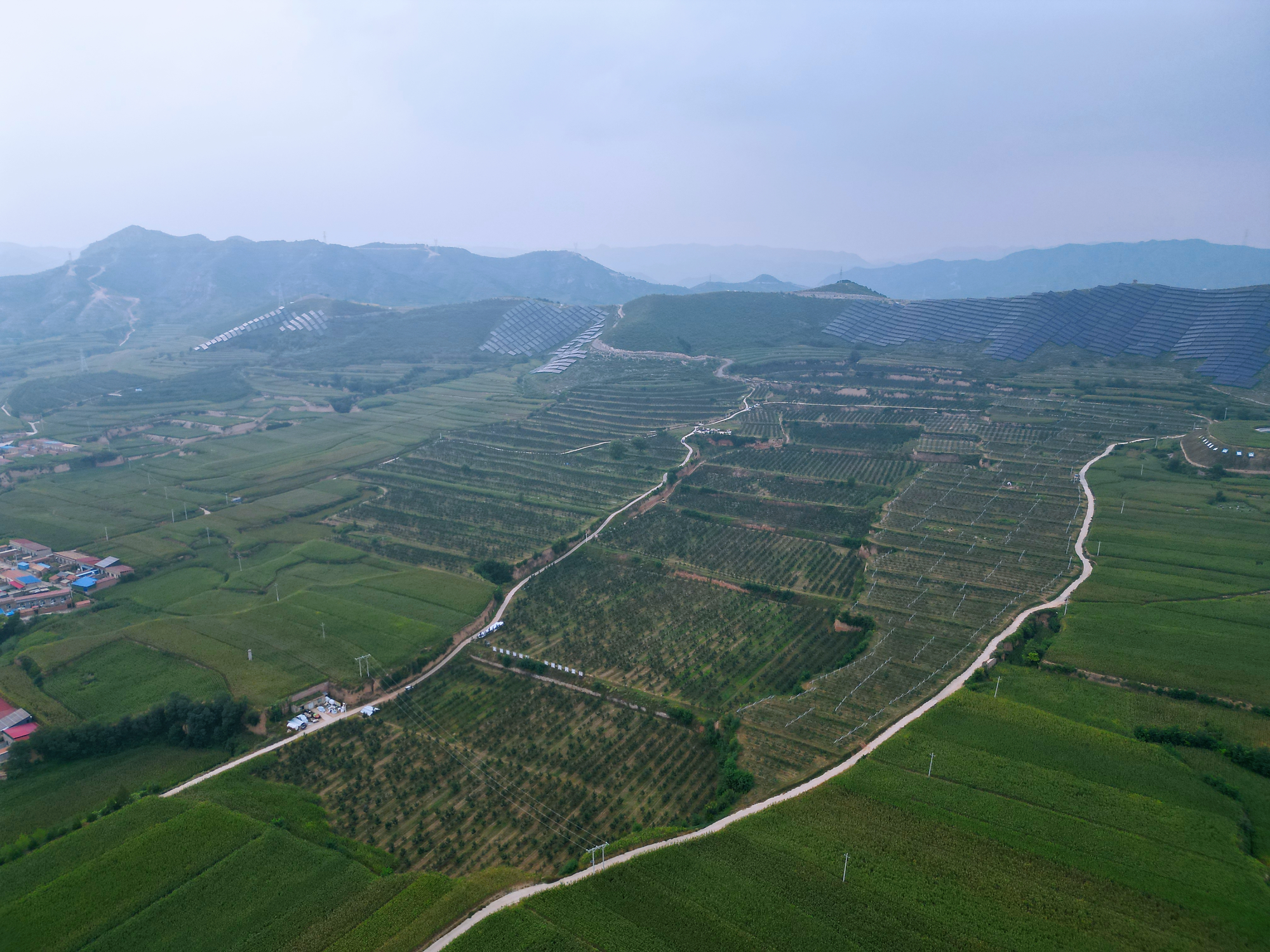 平原村蘋果產(chǎn)業(yè)園鳥瞰圖(昔陽融媒供圖)