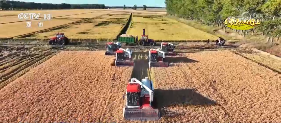 在綏濱縣新富鄉(xiāng)的稻田里,多臺現(xiàn)代化收割機正在緊張作業(yè)。伴隨著機器的轟鳴聲,一排排稻稈被快速卷入收割機,經(jīng)過脫粒、篩選等工序,飽滿的稻谷源源不斷地從出糧口傾瀉而出,裝入一旁等候的運輸車輛中。
