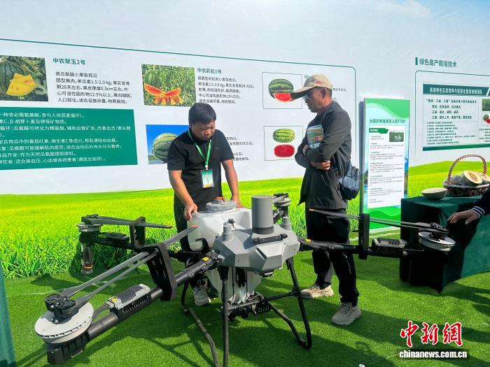 9月23日,新疆慶?!爸袊r(nóng)民豐收節(jié)”活動在昌吉州舉行,圖為現(xiàn)場展出的農(nóng)業(yè)植保無人機(jī)。 左丹丹 攝