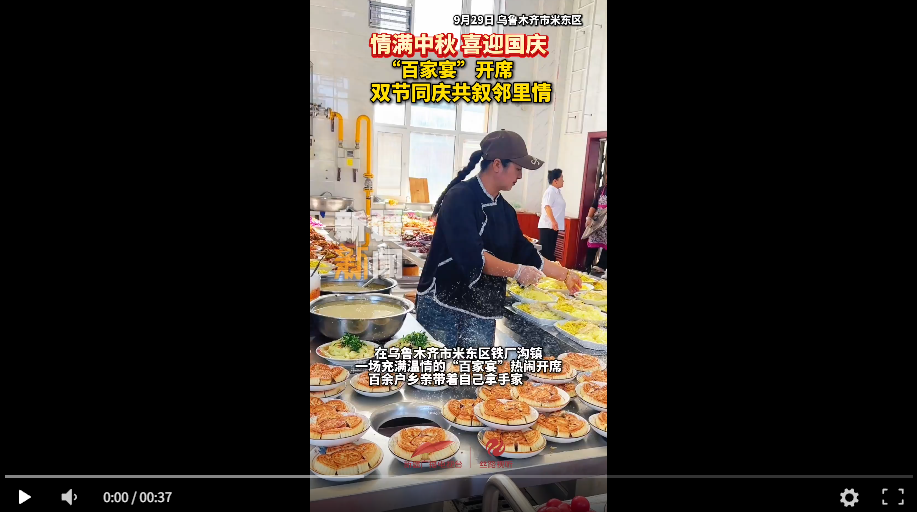 新疆廣播電視臺(tái)/絲路視聽(tīng)訊 (記者:于美玲 李新剛 )中秋與國(guó)慶相擁,團(tuán)圓與歡歌同行。在烏魯木齊市米東區(qū)鐵廠溝鎮(zhèn),一場(chǎng)充滿鄉(xiāng)土溫情的“百家宴”熱鬧開(kāi)席,百余戶鄉(xiāng)親帶著自己拿手家常菜赴約,用飯菜香、鄰里情,勾勒出雙節(jié)喜慶氛圍。