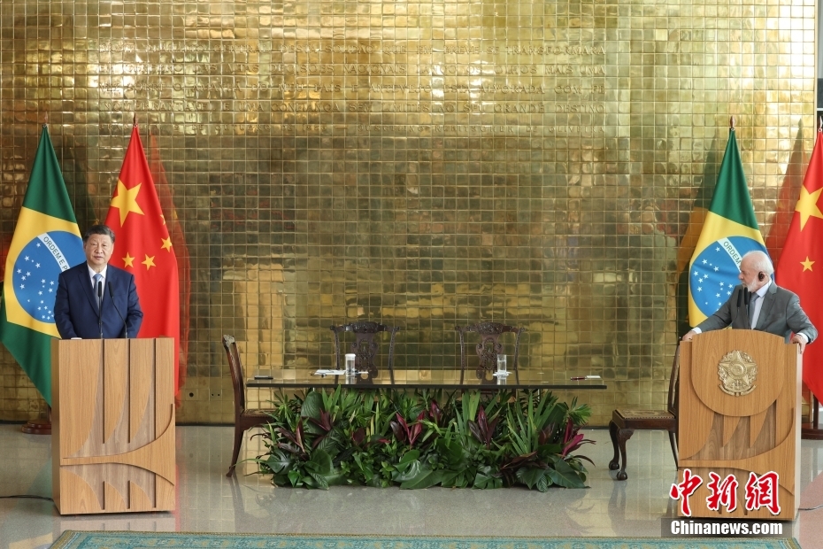 當(dāng)?shù)貢r(shí)間11月20日,中國(guó)國(guó)家主席習(xí)近平在巴西利亞總統(tǒng)官邸同巴西總統(tǒng)盧拉舉行會(huì)談。會(huì)談后,兩國(guó)元首共同會(huì)見(jiàn)記者。中新社記者 盛佳鵬 攝