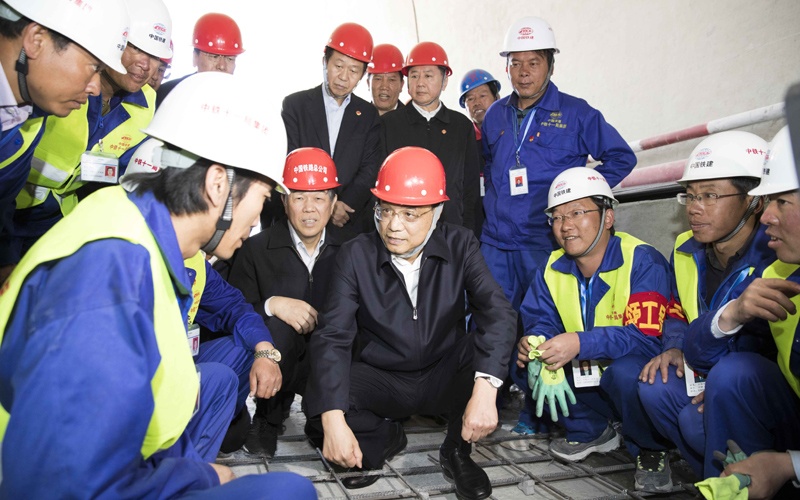 7月26日,李克強總理在山南市川藏鐵路拉林段施工現(xiàn)場。來源:中國政府網(wǎng)