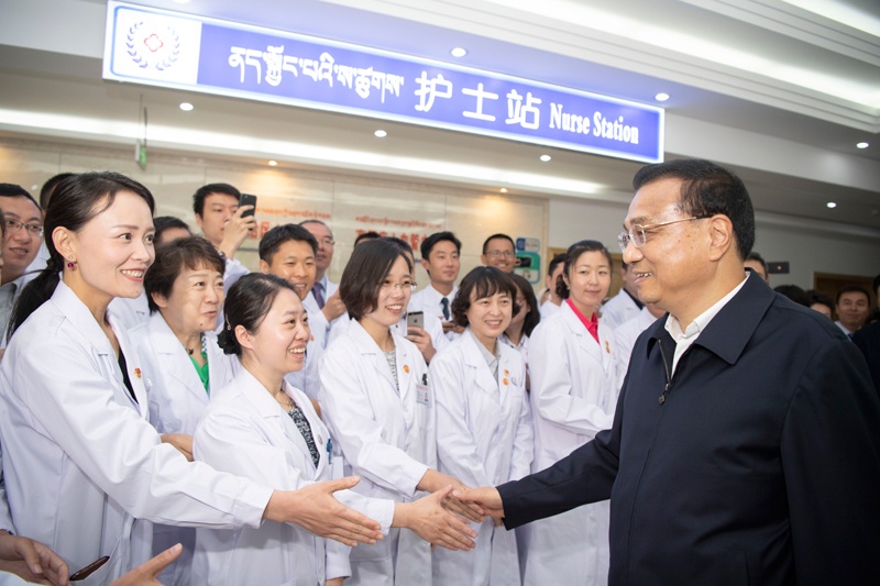 7月27日,李克強總理來到西藏自治區(qū)人民醫(yī)院,看望慰問援藏醫(yī)護人員。來源:中國政府網(wǎng)