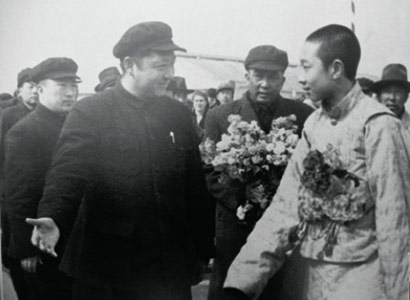 1951年4月中旬,習(xí)仲勛與十世班禪第一次會面。那時,十世班禪率領(lǐng)班禪堪布會議廳官員赴京途經(jīng)西安,習(xí)仲勛作為西北局和西北軍政委員會主要負(fù)責(zé)人,到機場迎接。班禪走下飛機時,一個眉清目秀、和善聰慧、舉止文雅、彬彬有禮的英俊藏族少年活佛形象,出現(xiàn)在習(xí)仲勛的眼前。在飛機舷梯下,十世班禪緊緊握住習(xí)仲勛的手,心情激動地說:“我們是專程去北京向毛主席致敬的!我要把藏族人民對中央人民政府和毛主席的良好祝愿親口轉(zhuǎn)達給毛主席?!痹诋?dāng)晚歡迎會上,十世班禪表示堅決擁護中央人民政府,決心與西藏各界愛國人士一道為西藏的解放和藏族人民的團結(jié)努力奮斗?!坝兄静辉谀旮摺?,十世班禪的愛國熱情和坦誠豪爽的性格給習(xí)仲勛留下了深刻的印象。當(dāng)天,習(xí)仲勛把他接到西北局大院自己家中,十世班禪與習(xí)仲勛的大兒子習(xí)富平同齡,兩人很快就熟稔起來。