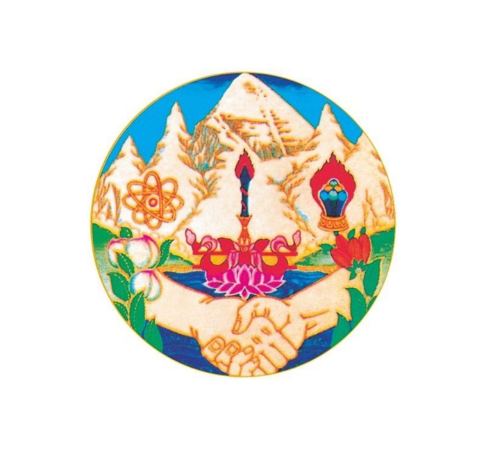 圖為十世班禪大師親自設(shè)計并請畫家洛松向秋付諸筆端的援助西藏發(fā)展基金會徽標(biāo)。