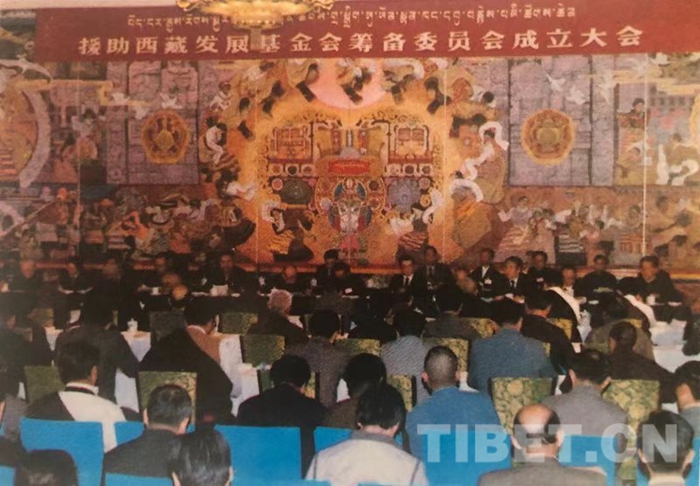 十世班禪大師和阿沛?阿旺晉美同志積極爭取到中央領(lǐng)導(dǎo)和各有關(guān)方面的支持贊同,在習(xí)仲勛等領(lǐng)導(dǎo)同志親筆批示關(guān)懷下,援藏基金會籌備委員會成立大會終于在1987年4月15日于人民大會堂西藏廳成功召開。班禪大師和阿沛?阿旺晉美同志共同擔(dān)任籌備委員會主任,帕巴拉?格列朗杰等40多位德高望重的領(lǐng)導(dǎo)人和各界知名人士任籌委會委員,熱地、趙樸初等20多位中央和西藏等省區(qū)領(lǐng)導(dǎo)同志擔(dān)任顧問。烏蘭夫同志代表黨中央、國務(wù)院講話,向大會表示熱烈祝賀,強調(diào)了“黨中央對支持西藏發(fā)展進步一系列重大的特殊政策和靈活措施”不會變,希望援藏基金會“對西藏及四省藏區(qū)各項建設(shè)事業(yè)發(fā)展發(fā)揮輔助作用”。班禪大師聽了烏蘭夫副主席的鼓勵也非常高興,他動情的規(guī)劃道:“西藏山河壯麗、幅員遼闊、資源豐富、風(fēng)景迷人,來自世界的各方友人都對西藏很感興趣,愿意為西藏的經(jīng)濟發(fā)展、文化技術(shù)事業(yè)進步提供援助。援藏基金會的宗旨就是聯(lián)絡(luò)各方友好人士和友好政府、組織、團體,為西藏社會發(fā)展提供不附加任何政治條件的資金和實物援助?;I集基金將直接用于發(fā)展西藏的經(jīng)濟、文化、教育、衛(wèi)生、科技事業(yè),包括名勝古跡和著名寺廟的維修、藏醫(yī)藏藥的挖掘整理和開發(fā)等?!贝髱熤朴喅龌饡_總部辦公室和北京辦公室的詳盡年度工作預(yù)案,還胸有成竹地預(yù)告,待籌備委員會做出成績來,基礎(chǔ)和條件成熟后,將正式成立援藏基金會。
