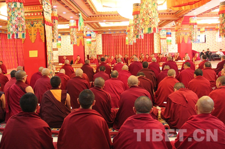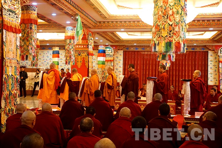 法會禮請全國政協(xié)常委、中國佛教協(xié)會副會長班禪額爾德尼?確吉杰布拈香主法,中國藏語系高級佛學(xué)院領(lǐng)導(dǎo)、經(jīng)師、學(xué)員及宗教界教職員工約130人參加法會。