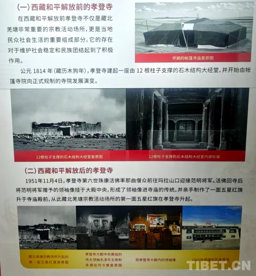 走進孝登寺,主殿正中央懸掛的領(lǐng)袖像莊嚴醒目。據(jù)孝登寺管委會副書記、主任羅布旺秋介紹,1951年,范明將軍率解放軍途經(jīng)那曲時,六世珠康活佛力排眾議前往馬拉山迎接。范明將軍向僧眾宣講黨的民族宗教政策,并向六世珠康活佛贈送了毛主席和朱總司令畫像。此后,六世珠康活佛將領(lǐng)袖像敬懸于大殿正中,這一傳統(tǒng)延續(xù)至今。他還親手制作并升起了藏北寺廟中的第一面五星紅旗。