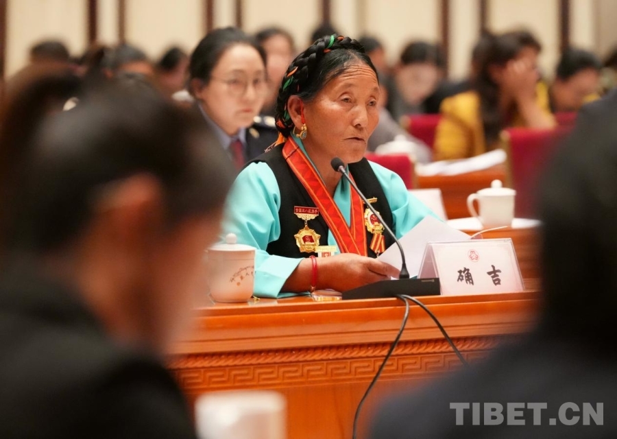 西藏日喀則市崗巴縣昌龍鄉(xiāng)乃村原村委會主任確吉講述了自己40年來發(fā)揚愛國擁軍優(yōu)良傳統(tǒng)的經(jīng)歷。2017年深秋,部隊運送物資到前沿陣地時突遇暴風(fēng)雪被困,確吉組織群眾鏟雪開路,經(jīng)過20多小時努力完成物資運送任務(wù)。她的母親拉吉是“愛國擁軍模范”,臨終前叮囑她傳承擁軍傳統(tǒng),確吉也帶著女兒一起走在擁軍路上,傳承“守邊即守家,國安家才安”的家風(fēng)家訓(xùn)。她表示,將帶領(lǐng)村民在國家固邊興邊富民行動中發(fā)揮作用。