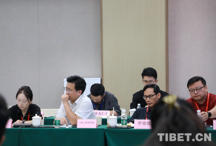 圖為馬扎·索南周扎(左二)在2025年8月北京相關座談會上聽取專家學者的交流分享 攝影:楊月云
