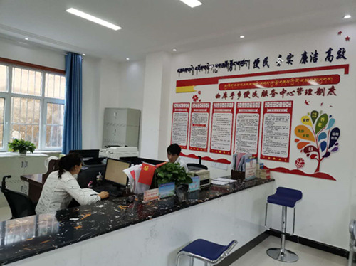 曲庫乎鄉(xiāng)便民服務(wù)中心工作人員正在開展工作。人民網(wǎng) 吳兆飛 攝