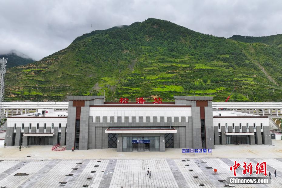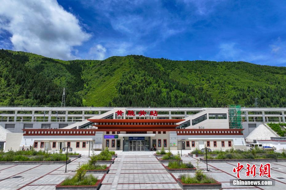 圖為7月7日拍攝的川青鐵路松潘站站房外景。(無(wú)人機(jī)照片)中新社記者 劉忠俊 攝