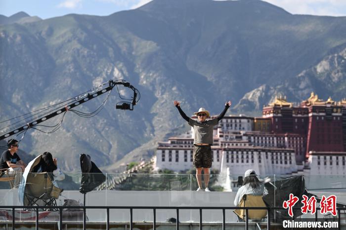 7月7日,游客在西藏拉薩市的一家景觀咖啡廳拍攝以布達(dá)拉宮為背景的 “旱地拔蔥” ?!昂档匕问[” 式的創(chuàng)意拍攝在拉薩掀起打卡熱潮。游客借助搖臂攝像機(jī),高高躍起,與雄偉的布達(dá)拉宮同框,拍出極具視覺(jué)沖擊力的“電影級(jí)”大片。據(jù)悉,拍攝“旱地拔蔥”的景觀咖啡廳從今年5月開業(yè)以來(lái),平均每天接待游客300到500人次。中新社記者 貢嘎來(lái)松 攝