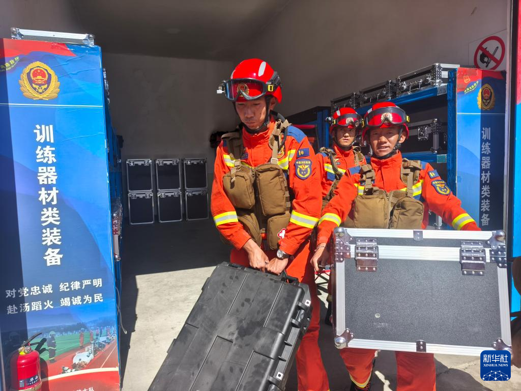 7月8日,西藏森林消防總隊(duì)日喀則大隊(duì)的消防員在整理器材,準(zhǔn)備前往吉隆口岸救災(zāi)。新華社發(fā)