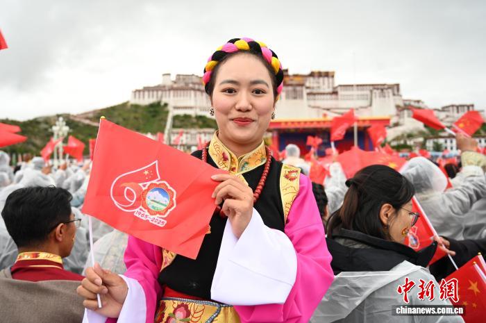 8月21日,青年律師次仁卓瑪在布達拉宮廣場參加慶祝活動。中新社記者 趙朗 攝