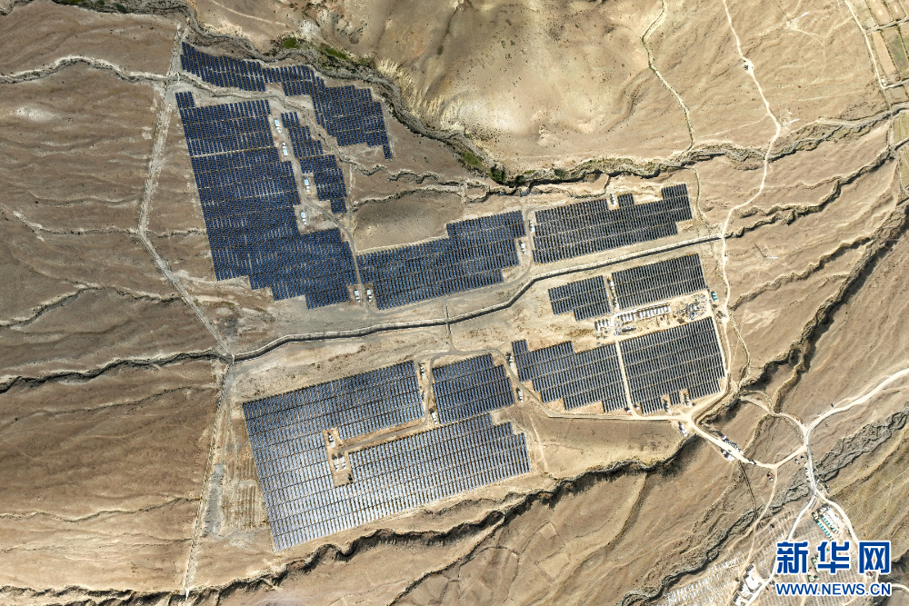 措美縣縣城附近的光伏電站(無人機照片)。新華網 旦增努布 攝