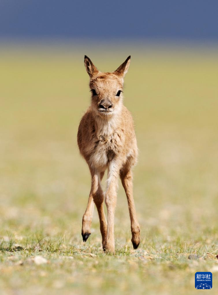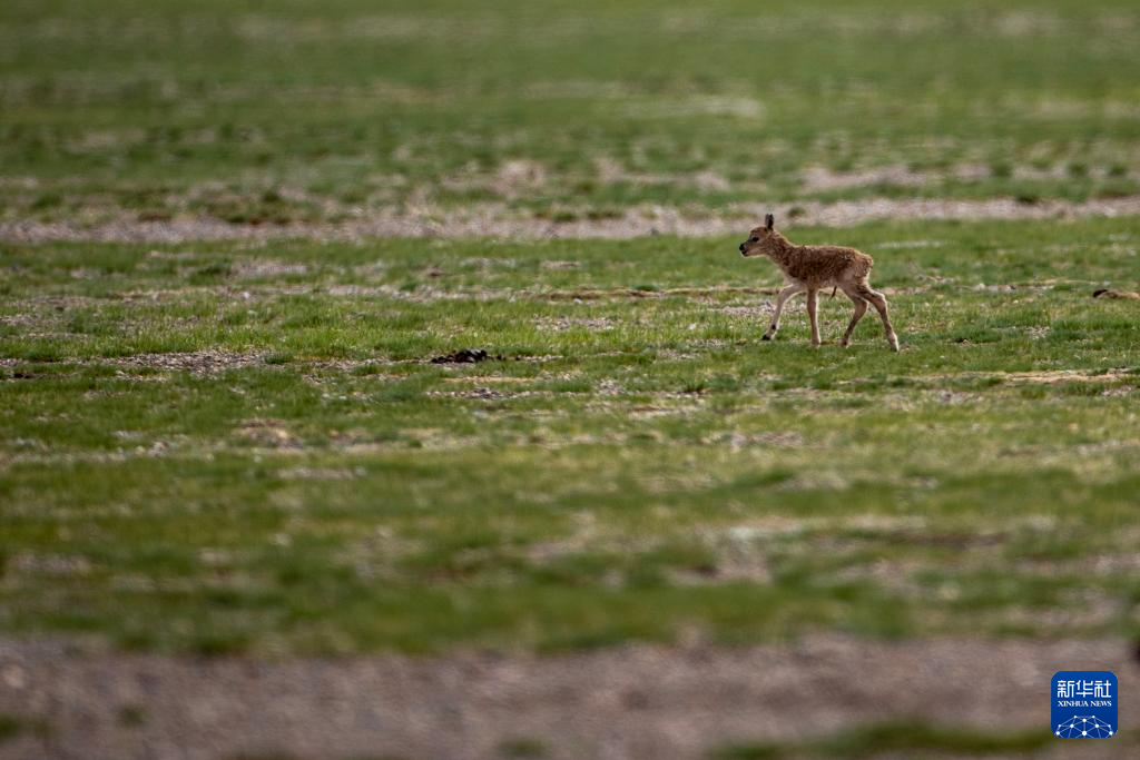 魯確塘草原上臍帶尚未脫落的小藏羚羊(6月17日攝)。新華社記者 姜帆 攝