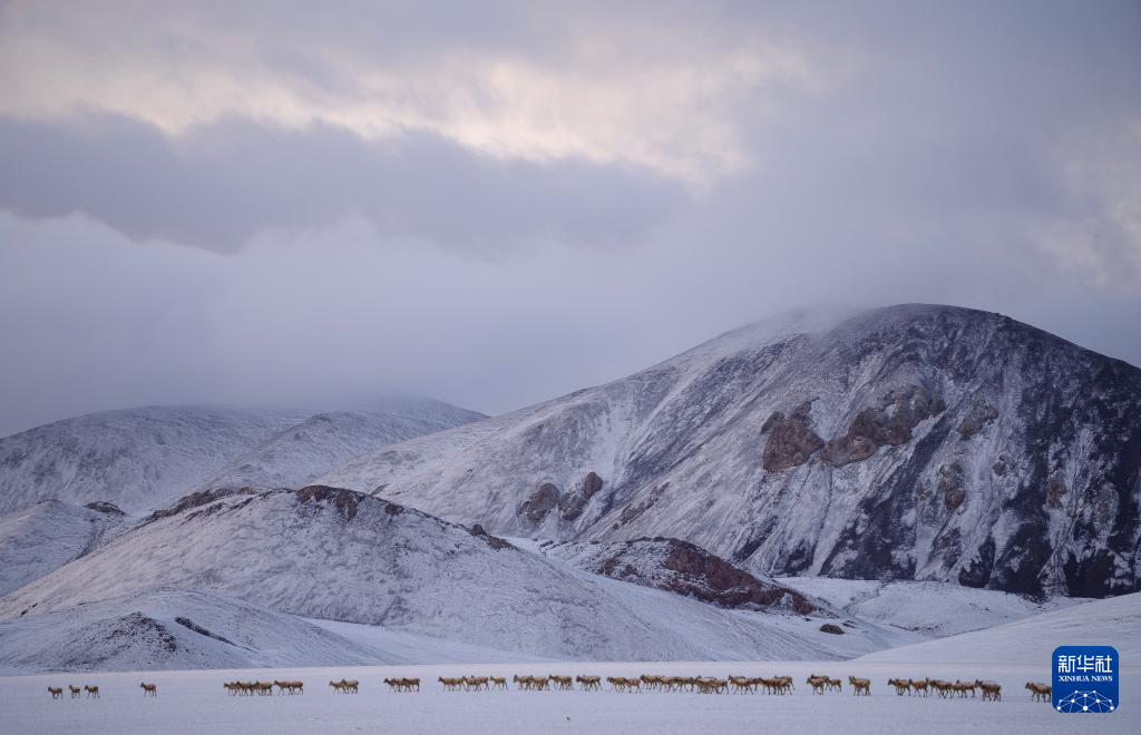 這是雪地中遷徙的藏羚羊(5月8日攝)。新華社記者 丁增尼達(dá) 攝
