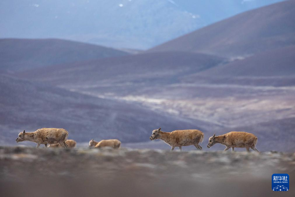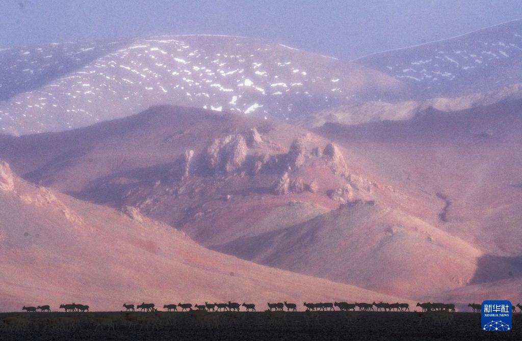 6月15日清晨在羌塘國(guó)家級(jí)自然保護(hù)區(qū)拍攝的遷徙中的母藏羚羊。新華社記者 費(fèi)茂華 攝