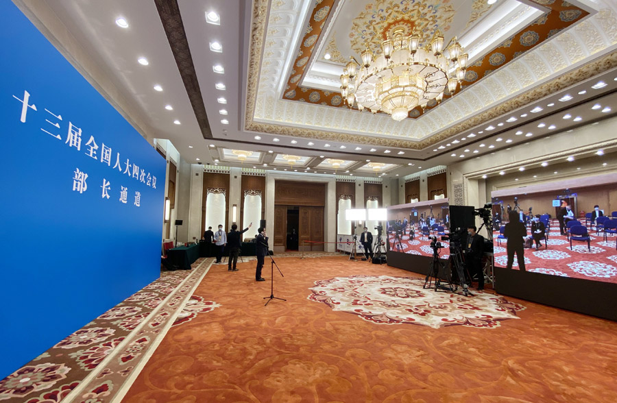 3月5日,第十三屆全國人民代表大會第四次會議舉行首場“部長通道”采訪活動。這是記者在分會場通過網(wǎng)絡(luò)視頻方式提問。新華社記者 曹燦 攝