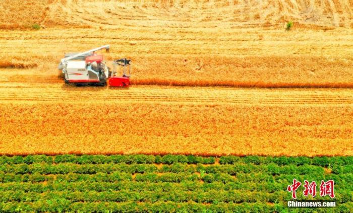 資料圖:收割機穿梭在麥田中,為農(nóng)民豐收助力。劉浩 陳杰 攝