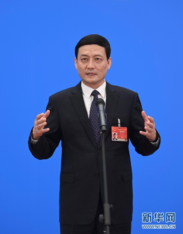 3月8日,第十三屆全國人民代表大會第四次會議舉行第二場“部長通道”采訪活動。這是記者在分會場通過網(wǎng)絡(luò)視頻方式采訪工業(yè)和信息化部部長肖亞慶。