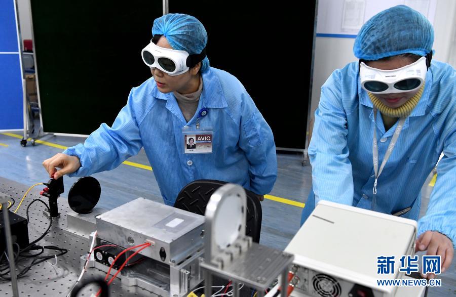 2月25日,在中國航空工業(yè)集團(tuán)公司洛陽電光設(shè)備研究所,航空工業(yè)集團(tuán)光電專業(yè)特級技術(shù)專家羊毅(左)與團(tuán)隊成員在實驗室做實驗。新華社記者 李安 攝