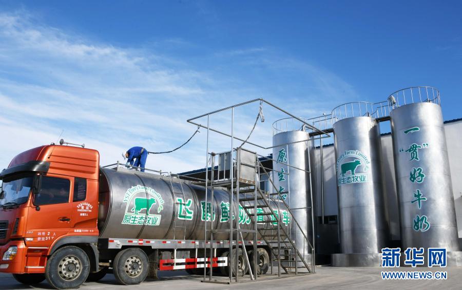 在黑龍江飛鶴乳業(yè)股份有限公司專屬的甘南縣瑞信達(dá)原生態(tài)牧場,工作人員在檢查一輛剛裝完鮮奶的全封閉低溫安全運輸車(2018年10月30日攝)。新華社記者王建威攝